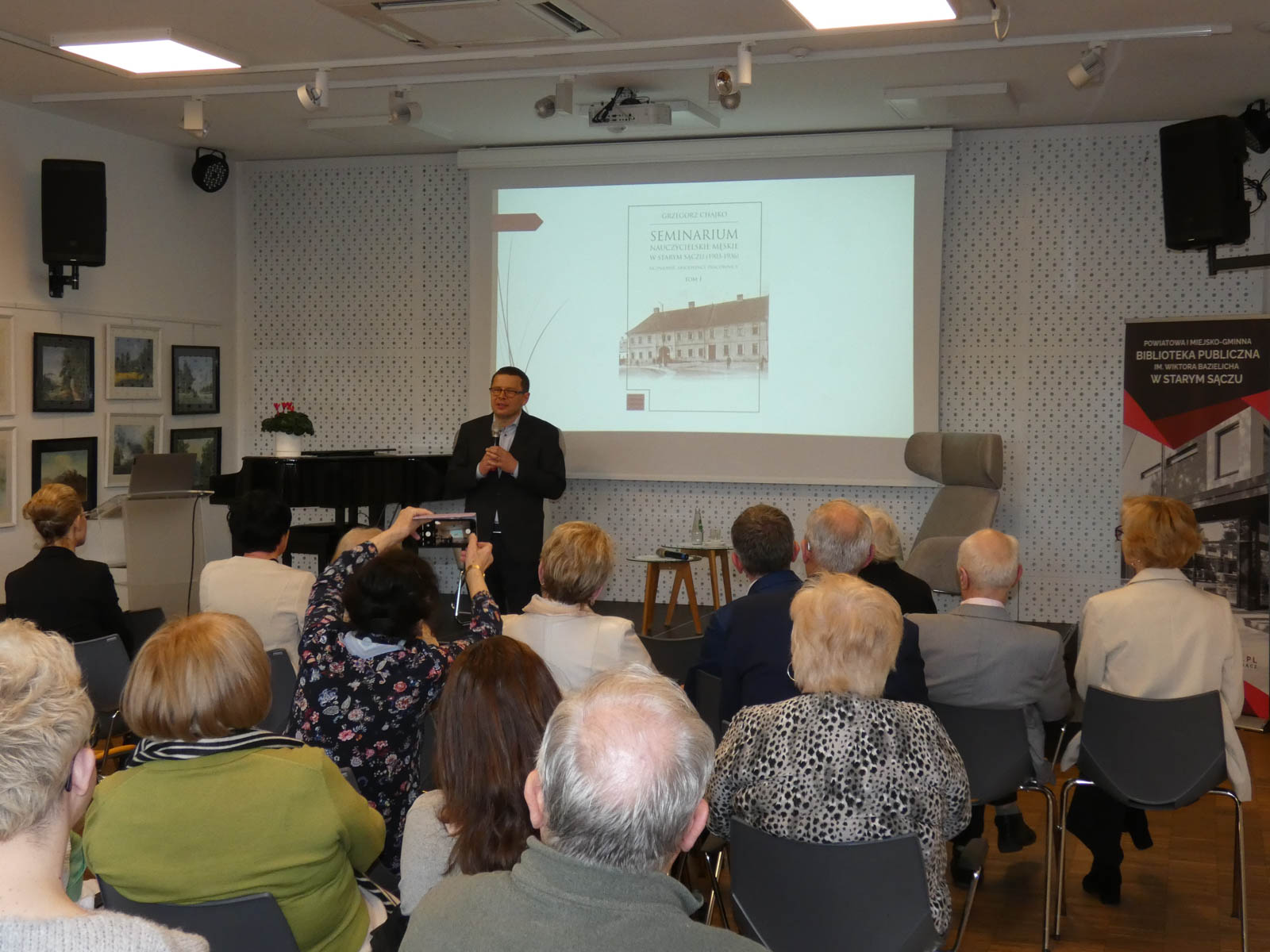 Podczas spotkania autor przybliżył uczestnikom historię jednej z najważniejszych instytucji edukacyjnych regionu sądeckiego. Opowiadał o funkcjonowaniu Seminarium Nauczycielskiego Męskiego w Starym Sączu, ukazując zarówno kontekst społeczno-polityczny epoki, jak i codzienne życie uczniów oraz nauczycieli. Nie zabrakło także refleksji nad znaczeniem badań nad historią lokalną oraz kulisów powstawania książki.