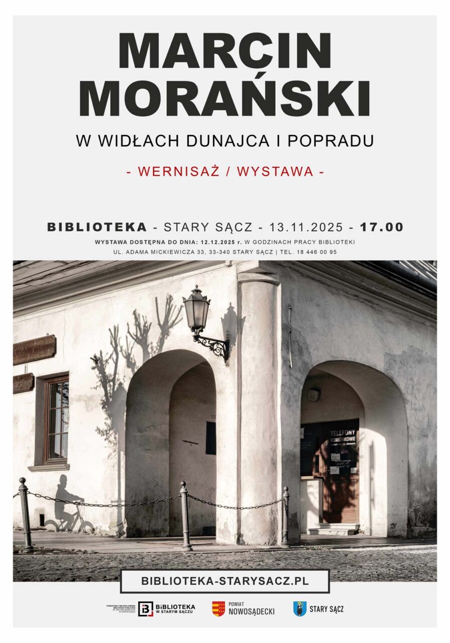 Wystawa: Marcin Morański – W widłach Dunajca i Popradu Informacje: Serdecznie zapraszamy na wystawę: Marcin Morański – „W widłach Dunajca i Popradu” Wystawa dostępna będzie do dnia: 12.12.2025 r. w godzinach pracy Starosądeckiej Biblioteki Data 03 gru 2025 Trwające Czas Cały dzień Lokalizacja Biblioteka Stary Sącz ul. Mickiewicza 33, 33-340 Stary Sącz Organizator Biblioteka Stary Sącz Telefon 184460095